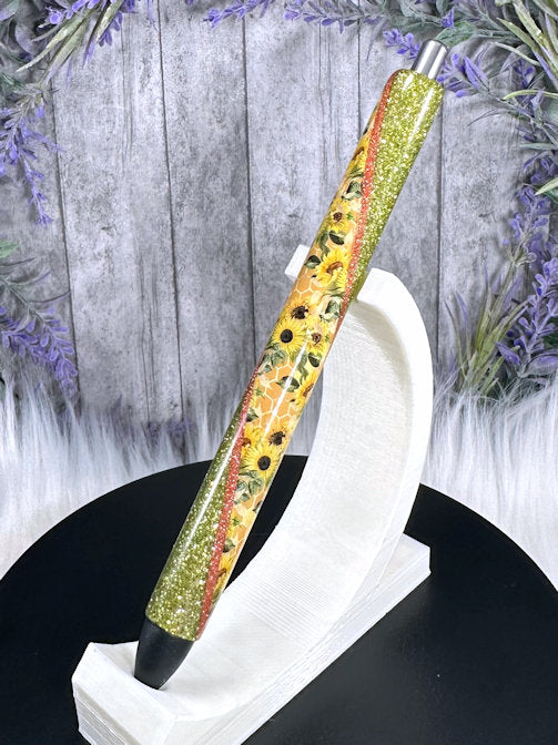 Handmade Fall Sunflowers glitter pen with free refill
