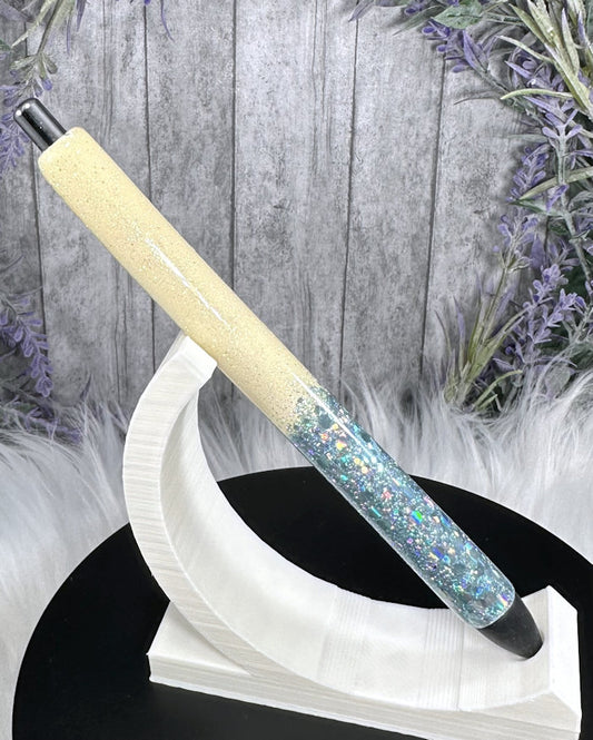 Handmade Yellow and Blue Ombre glitter pen with free refill