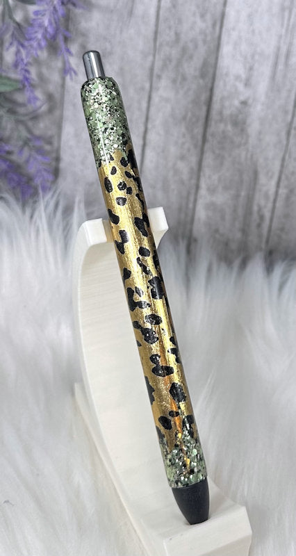 Handmade Green and Gold Cheetah animal print Washi Tape glitter pen with free refill