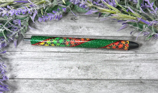 Handmade Marijuana Leaves on green glitter pen with free refill