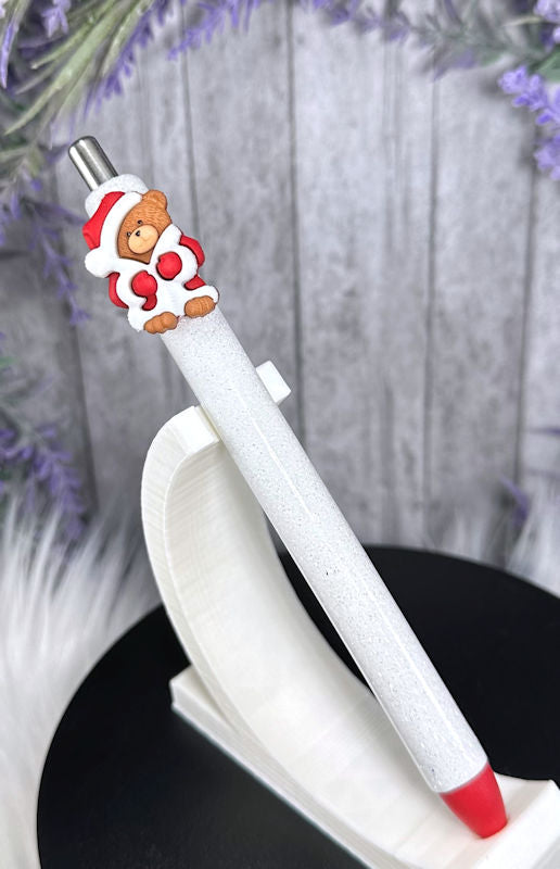 Handmade Teddy Bear Santa Christmas glitter pen with free refill