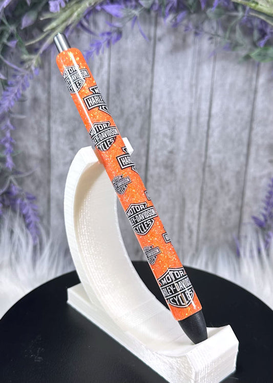 Handmade Wrapped Orange Harley Davidson glitter pen with free refill