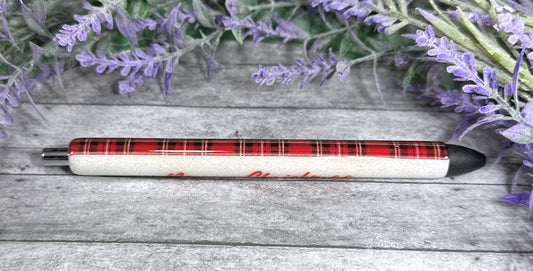 Handmade Merry Christmas Plaid glitter pen with free refill