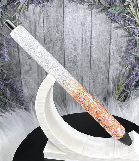 Handmade Dark Orange and White Ombre glitter pen with free refill