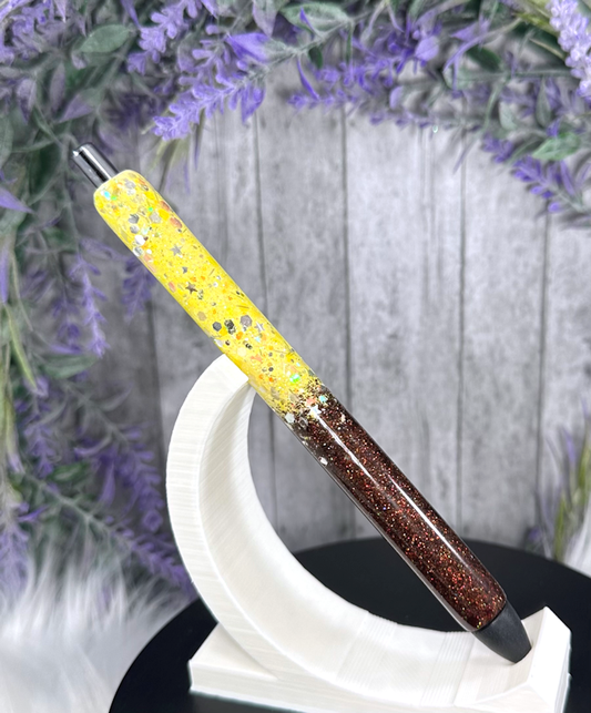 Handmade Brown and Yellow Ombre glitter pen with free refill