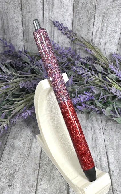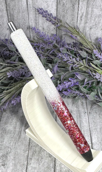 Handmade Ombre Cherry Red and White glitter pen with free refill