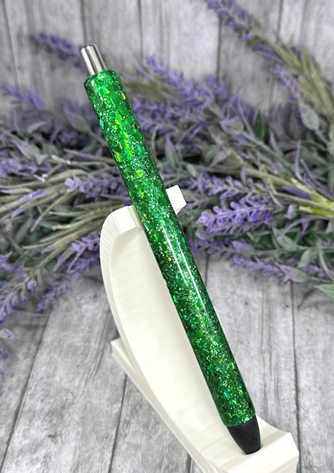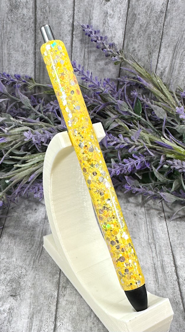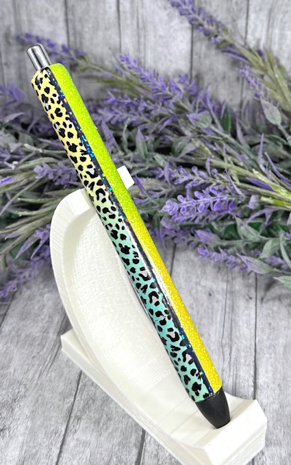 Handmade Ombre Yellow and Green glitter with rainbow animal print pen with free refill