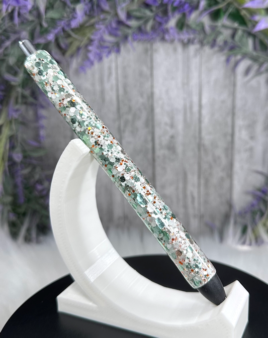 Handmade Sage green Silver and Brown glitter pen with free refill
