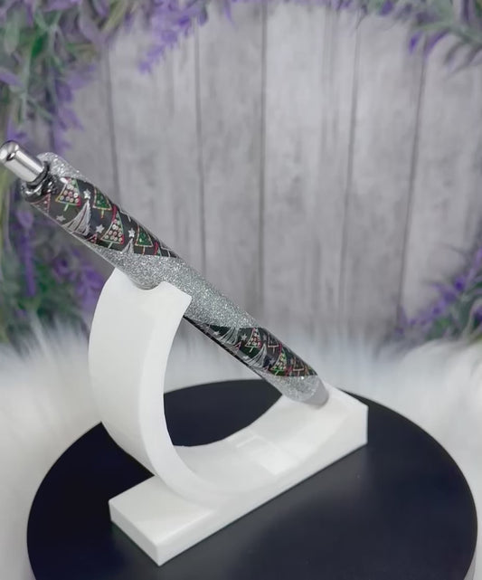 Handmade Mardi Gras and Silver Ombre glitter pen with free refill