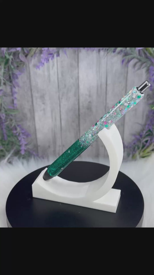 Handmade Ombre Aqua Blues glitter pen with free refill