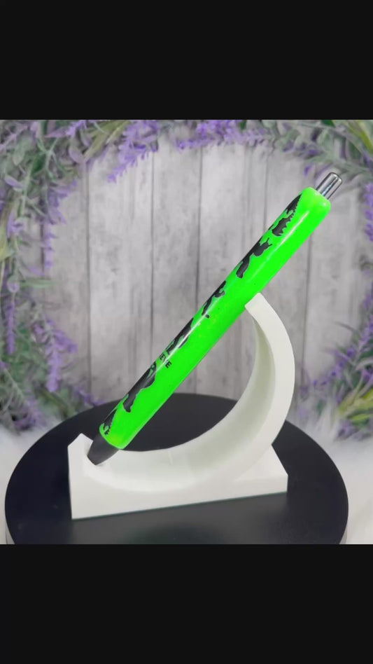 Handmade Bigfoot Sasquatch on green glitter pen with free refill