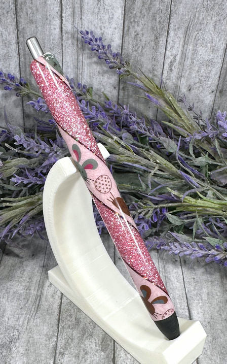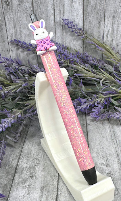 Handmade Easter Bunny on pink glitter pen with free refill