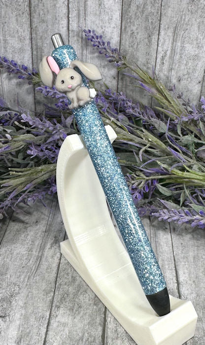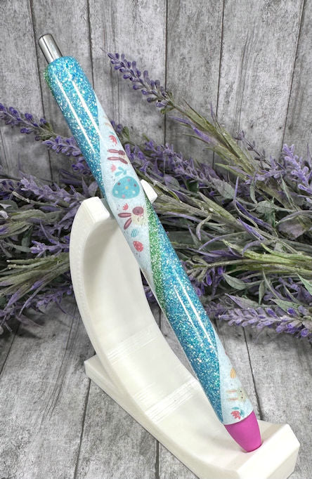 Handmade Easter Bunny on blue glitter pen with free refill