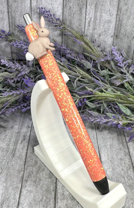 Handmade Easter Bunny on orange glitter pen with free refill