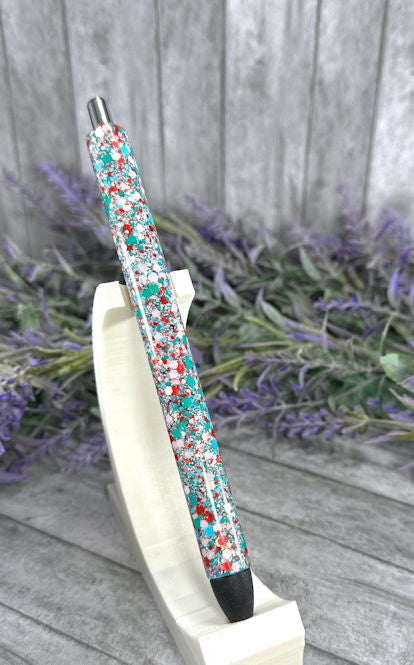 Handmade Cherry Red Pink and Aqua Party mix glitter pen with free refill