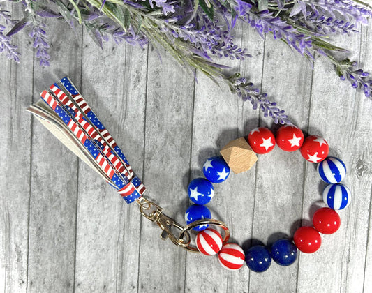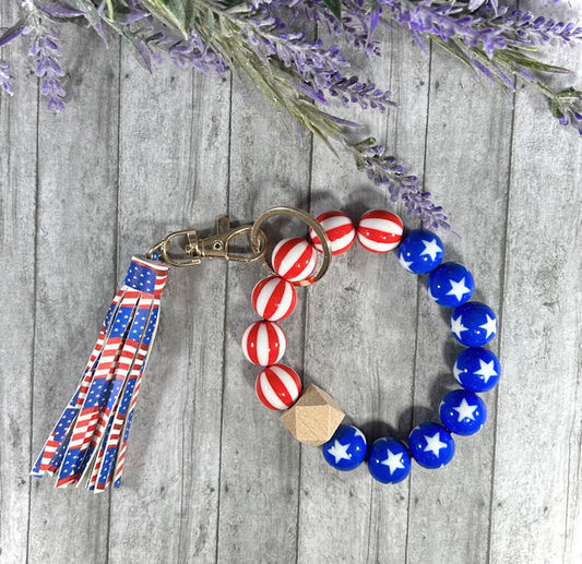 Handmade Shooting Stars Faux Leather Key Fob Wristlet