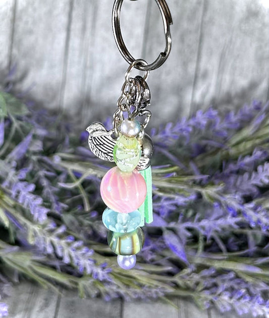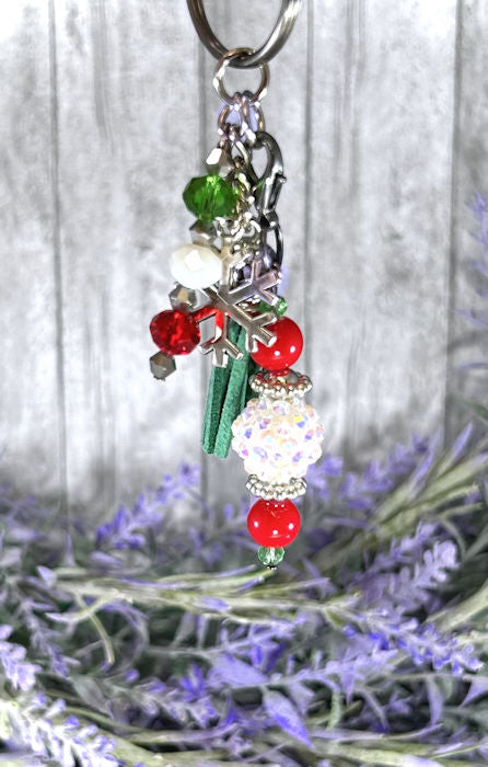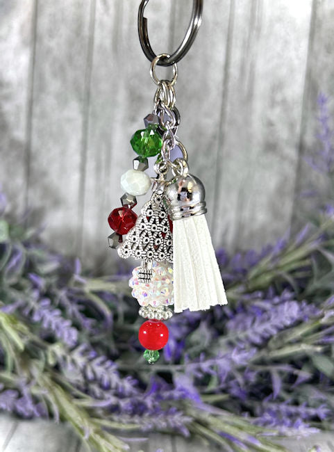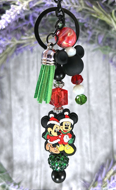Handmade Christmas Mouse Beaded Keychain With Clip and Keyring