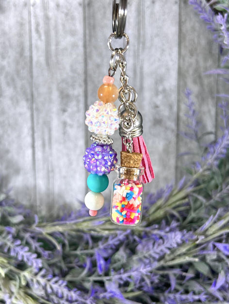 Handmade Ice Cream Cone w Sprinkles Faux Leather Key Fob Wristlet