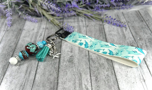 Handmade Dolphins Faux Leather Key Fob Wristlet