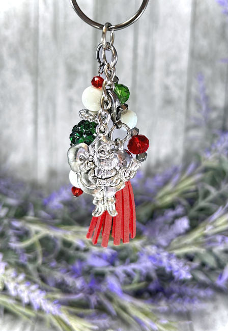 Handmade Christmas Santa Faux Leather Key Fob Wristlet