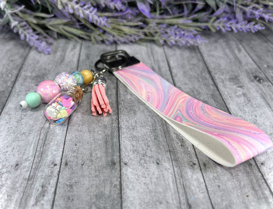 Handmade Marble with Hearts Faux Leather Key Fob Wristlet
