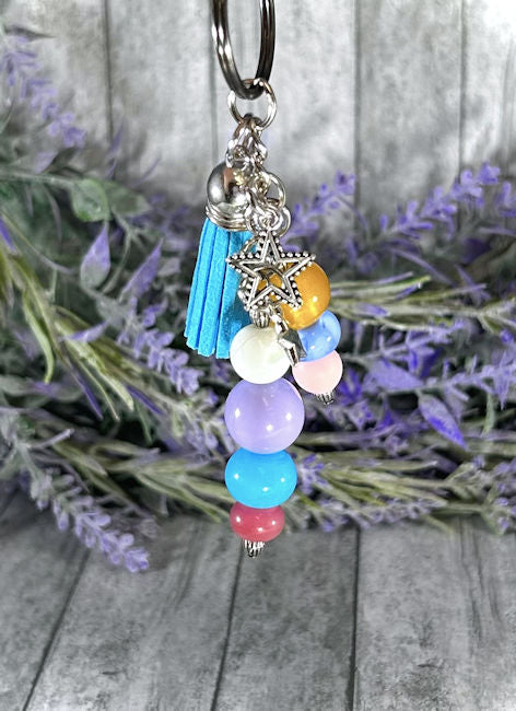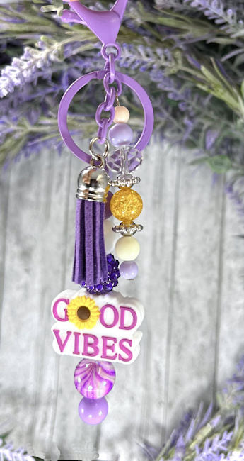 Handmade Good Vibes Beaded Keychain With Clip and Keyring