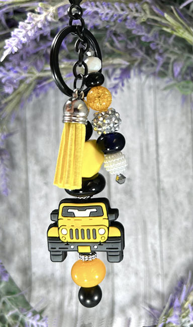Handmade Yellow Truck Beaded Keychain With Clip and Keyring