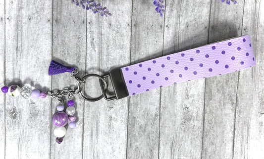 Handmade Purple Polka Dots Faux Leather Key Fob Wristlet