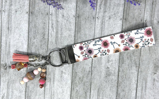 Handmade Flowers Faux Leather Key Fob Wristlet