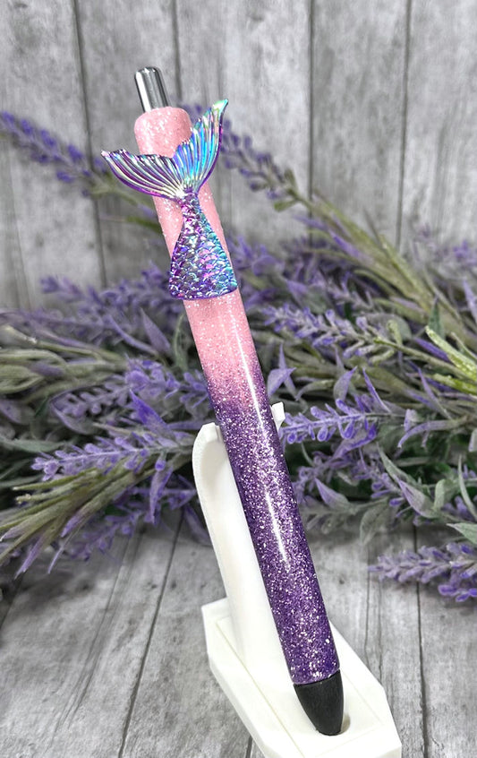 Handmade Mermaid Tail pink and purple glitter pen with free refill
