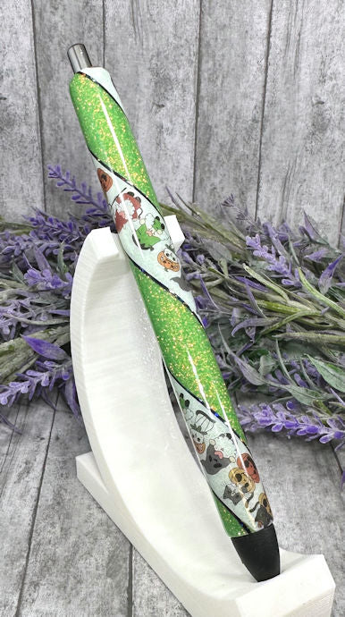 Handmade Halloween Gnome and Skeleton glitter pen with free refill