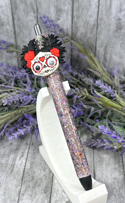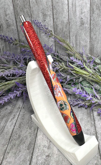 Handmade Halloween Day of the Dead glitter pen with free refill