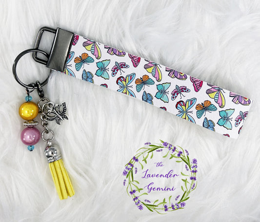 Handmade Butterflies Faux Leather Key Fob Wristlet