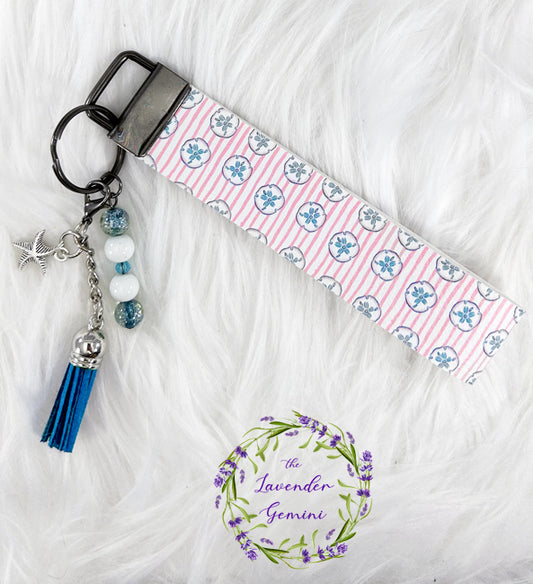 Handmade Ocean Sand dollar Starfish Faux Leather Key Fob Wristlet