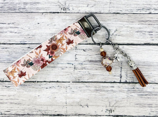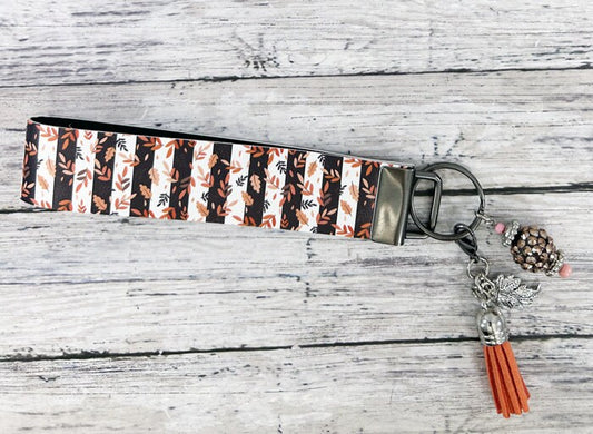 Fall Season Leaves Faux Leather Key Fob Wristlet