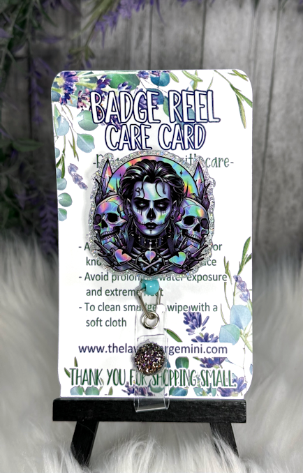 Handmade Halloween Gnomes Scrub top Badge Reel