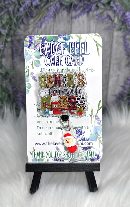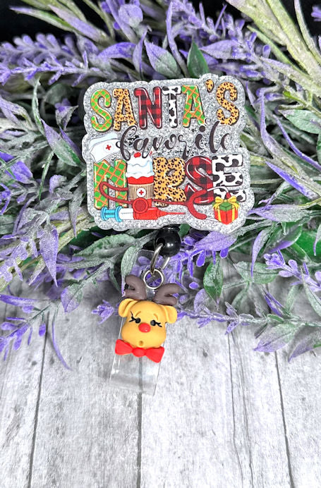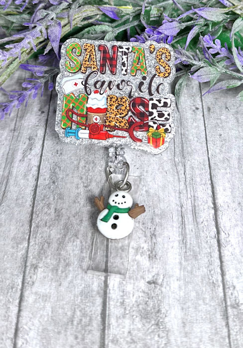 Handmade Santa's Favorite Nurse Badge Reel