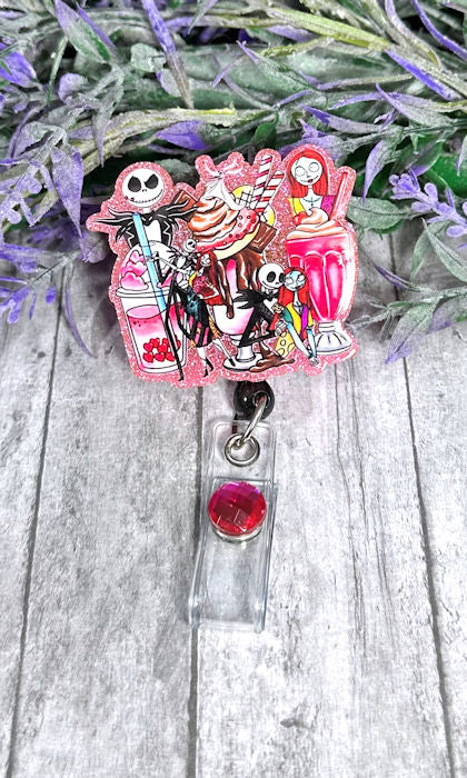 Handmade Jack and Sally Coffees Badge Reel
