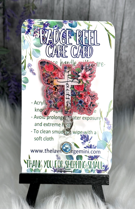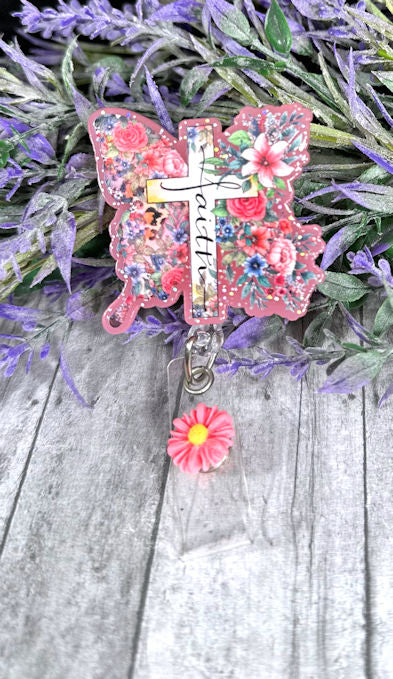 Handmade Faith Pink Butterfly Badge Reel