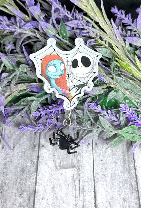 Handmade Jack and Sally Heart Badge Reel