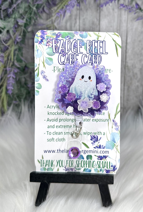 Handmade Purple Ghost Halloween Badge Reel