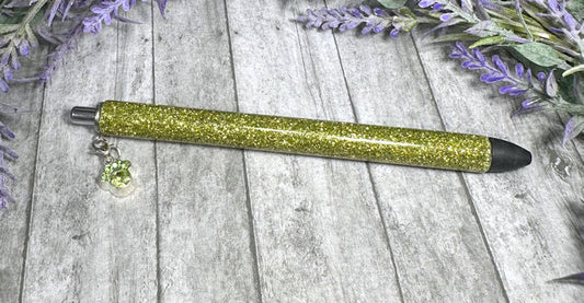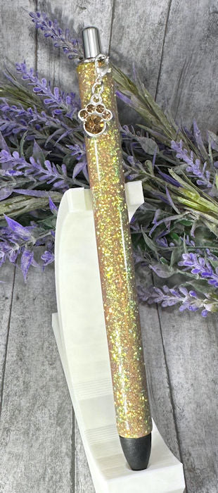 Handmade Medium Gold Dog Paw dangle charm glitter pen with free refill