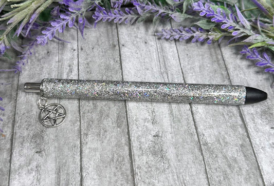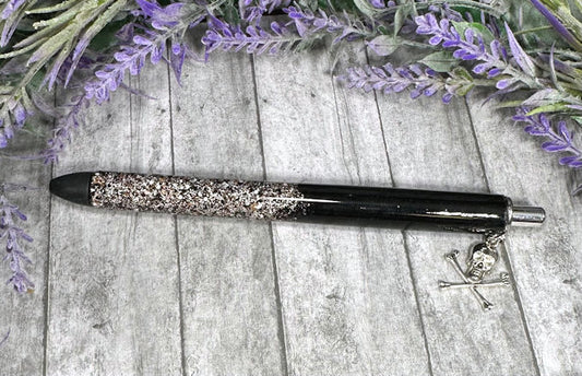 Handmade Skull and Crossbones dangle charm glitter pen with free refill