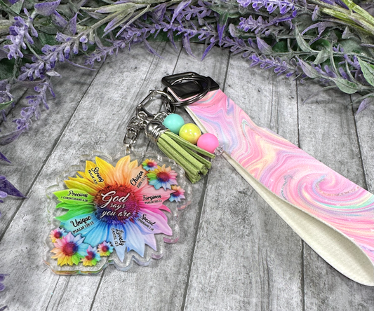 Handmade Rainbow colors Christian Faux Leather Key Fob Wristlet