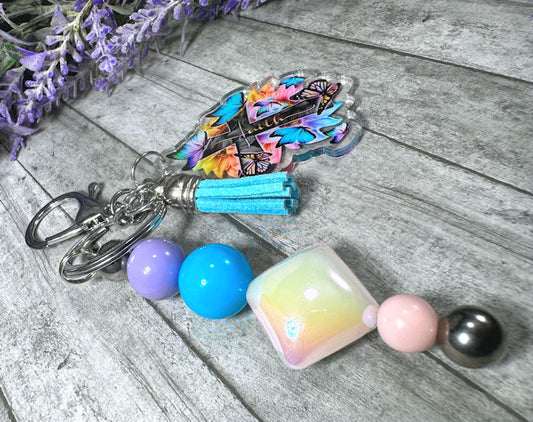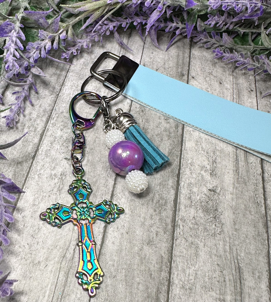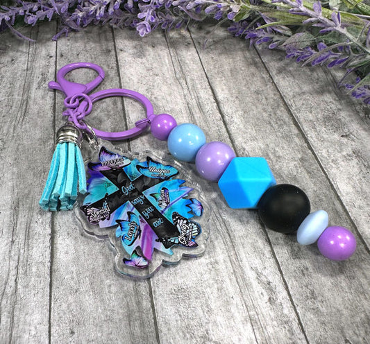 Handmade Beaded Aqua and Purple Christian Faith Easter Keychain With Clip and Keyring