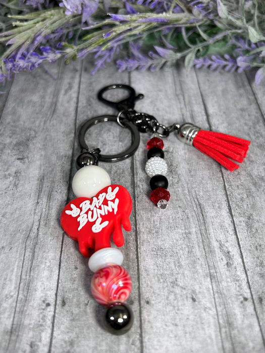 Handmade Bad Bunny Beaded Keychain With Clip and Keyring
