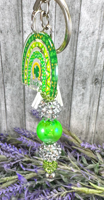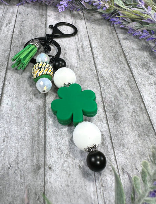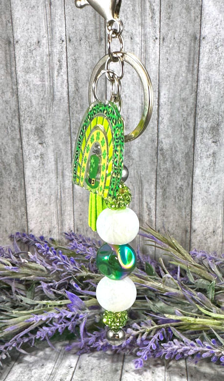 Handmade Beaded St Patricks Irish Keychain With Clip and Keyring