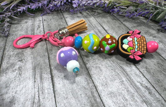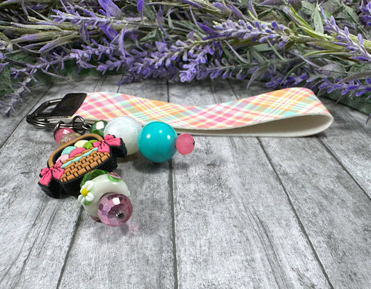 Handmade Beaded Easter basket Keychain With Clip and Keyring
