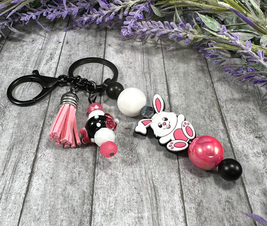 Handmade Beaded Easter Bunny Keychain With Clip and Keyring