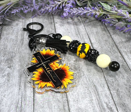 Handmade Beaded Sunflower Christian Faith Easter Keychain With Clip and Keyring